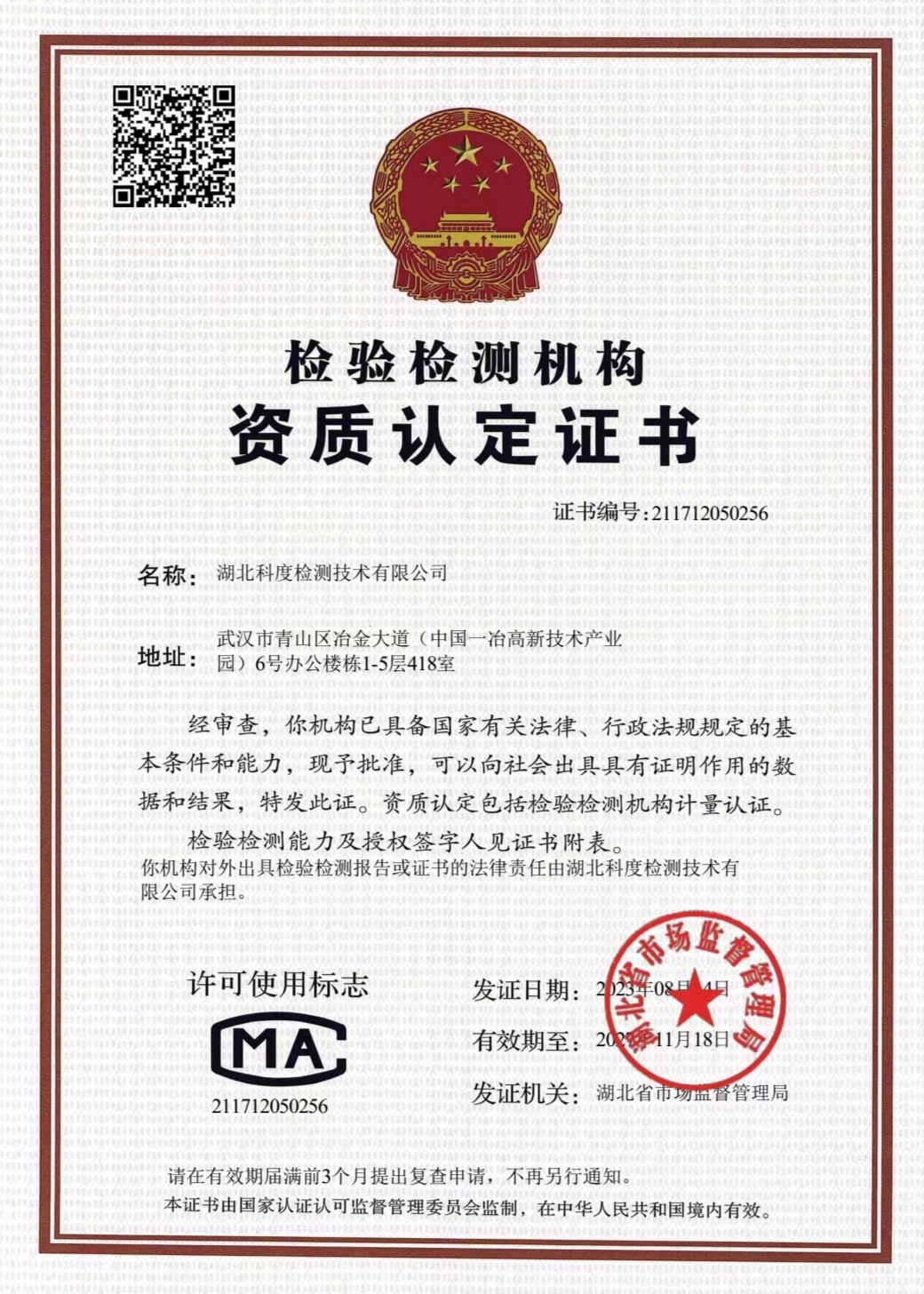 湖北科度檢測(cè)技術(shù)有限公司是一家專業(yè)從事環(huán)境類及相關(guān)領(lǐng)域檢測(cè)的第三方檢測(cè)機(jī)構(gòu),公司已通過湖北省市場(chǎng)監(jiān)督管理局CMA計(jì)量認(rèn)證,可以面向社會(huì)出具權(quán)威CMA檢測(cè)報(bào)告。 我公司實(shí)驗(yàn)室嚴(yán)格按照國家標(biāo)準(zhǔn)建設(shè),擁有一大批國內(nèi)外先進(jìn)儀器設(shè)備及現(xiàn)代化配套設(shè)施,并有經(jīng)驗(yàn)豐富的中高級(jí)專業(yè)技術(shù)人員和嚴(yán)格的實(shí)驗(yàn)室質(zhì)量保證體系為項(xiàng)目運(yùn)作提供強(qiáng)力支撐。 作為第三方檢測(cè)機(jī)構(gòu),公司始終以高度的社會(huì)責(zé)任感經(jīng)營(yíng)企業(yè),以“公正、嚴(yán)謹(jǐn)、高效”為宗旨,依托專業(yè)的技術(shù)實(shí)力為客戶提供專業(yè)優(yōu)質(zhì)檢測(cè)服務(wù),受到政府、企業(yè)和社會(huì)各界的廣泛關(guān)注和認(rèn)可。